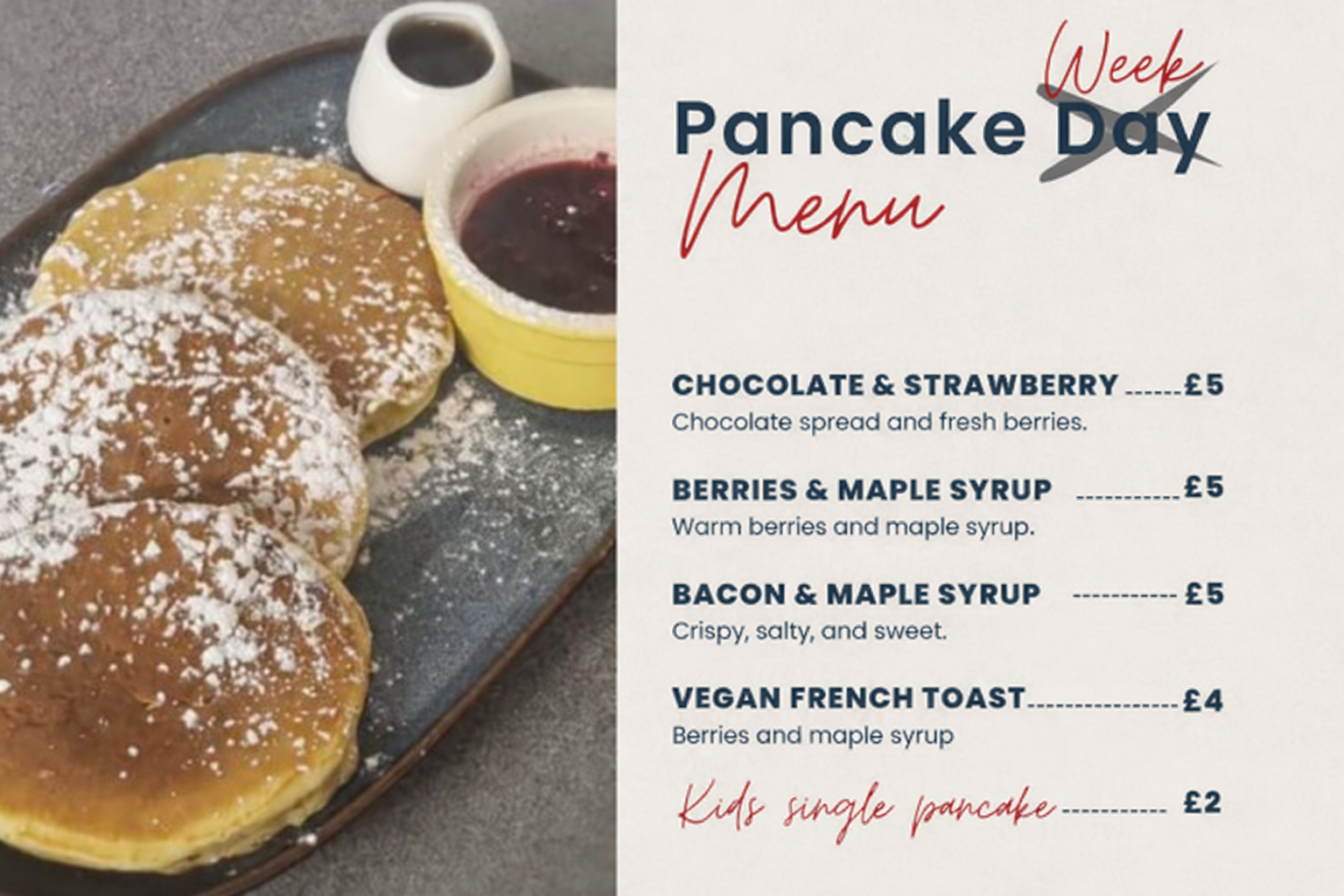 News: This half term we have a special pancake menu in addition to our usual offerings: